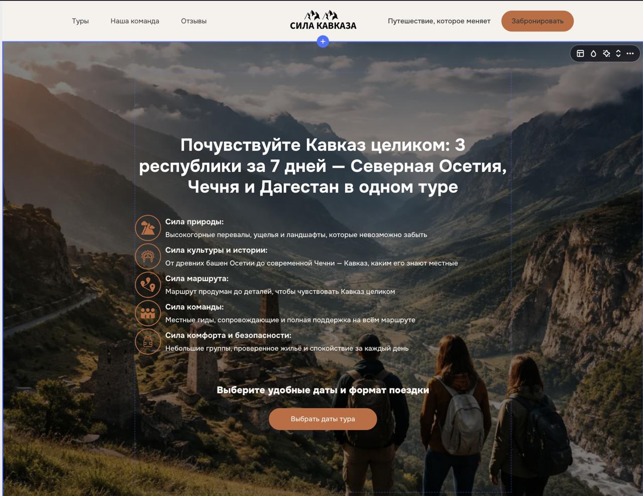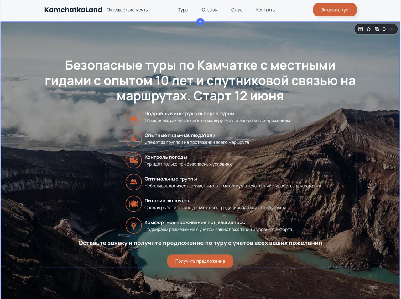 С 2022 года работал с 30+ проектами по разным туристическим направлениям: Кавказ, Камчатка, Алтай, Золотое кольцо и зарубежные туры: Дубай, Турция, Египет и т.д.